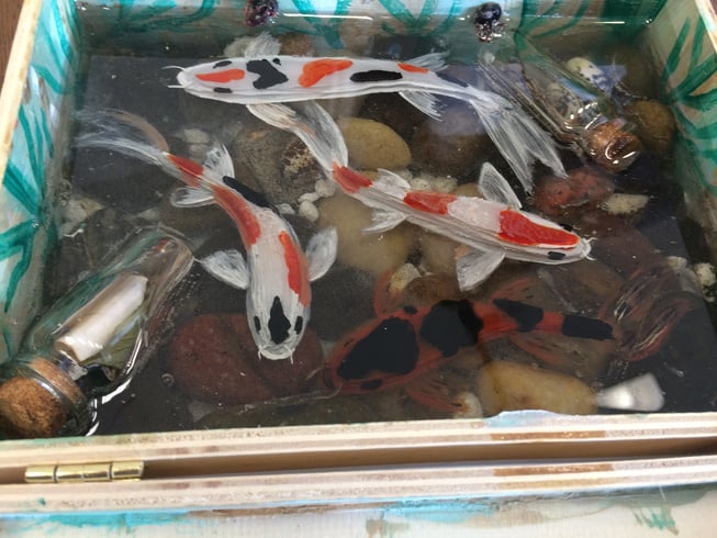 Several students learned a method of painting layers of an image onto separate layers of resin to create the impression of three dimensional fish. They learned the techniques and created a storefront on Etsy Marketplace where they could all sell their work in one place to reduce fees and reduce the amount of product each needed. The big learning was how to price competitively against products in the market that were similar to your own.