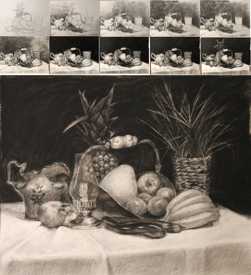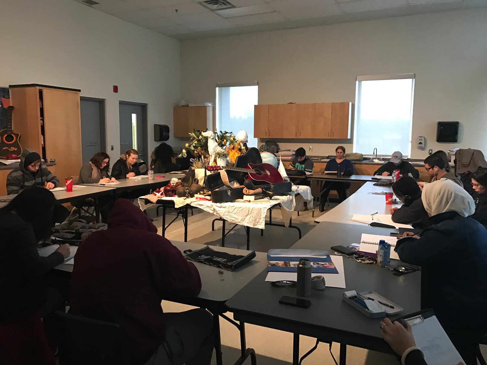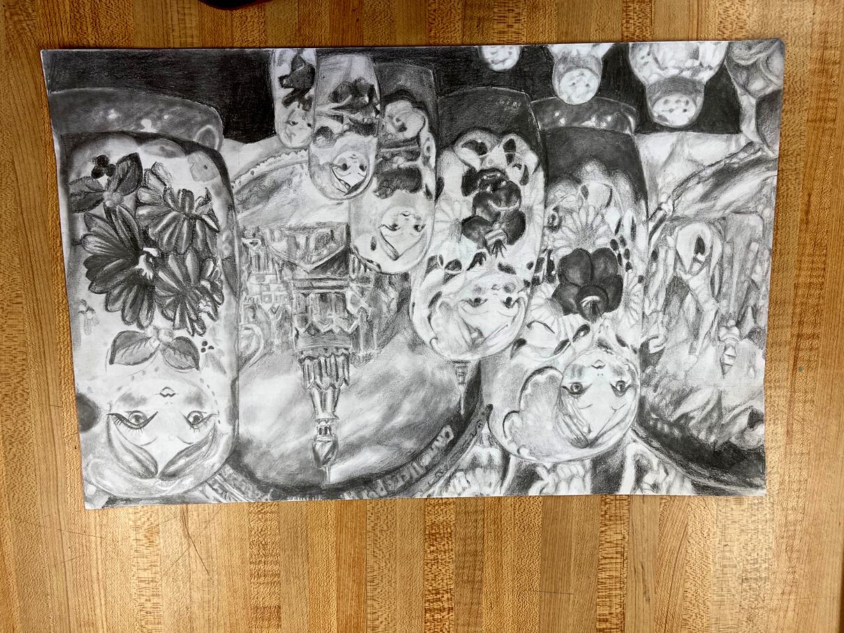 As part of our classic technique series the students draw a variety of still life objects, figurative life models and en plein air in traditional drawing mediums like paint, charcoal, ink, and graphite as well as unconventional explorations of mediums.
