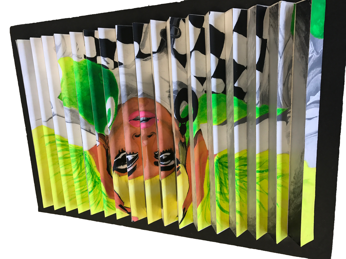 AVI4M: Student created Lenticular drawing based on their struggles with identity in their community.